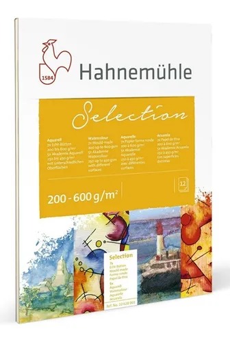 Block para Acuarela Hahnemuhle Selection con 12 tipos de papeles diferentes y viene con diferentes gramajes de 200grs hasta 600grs.