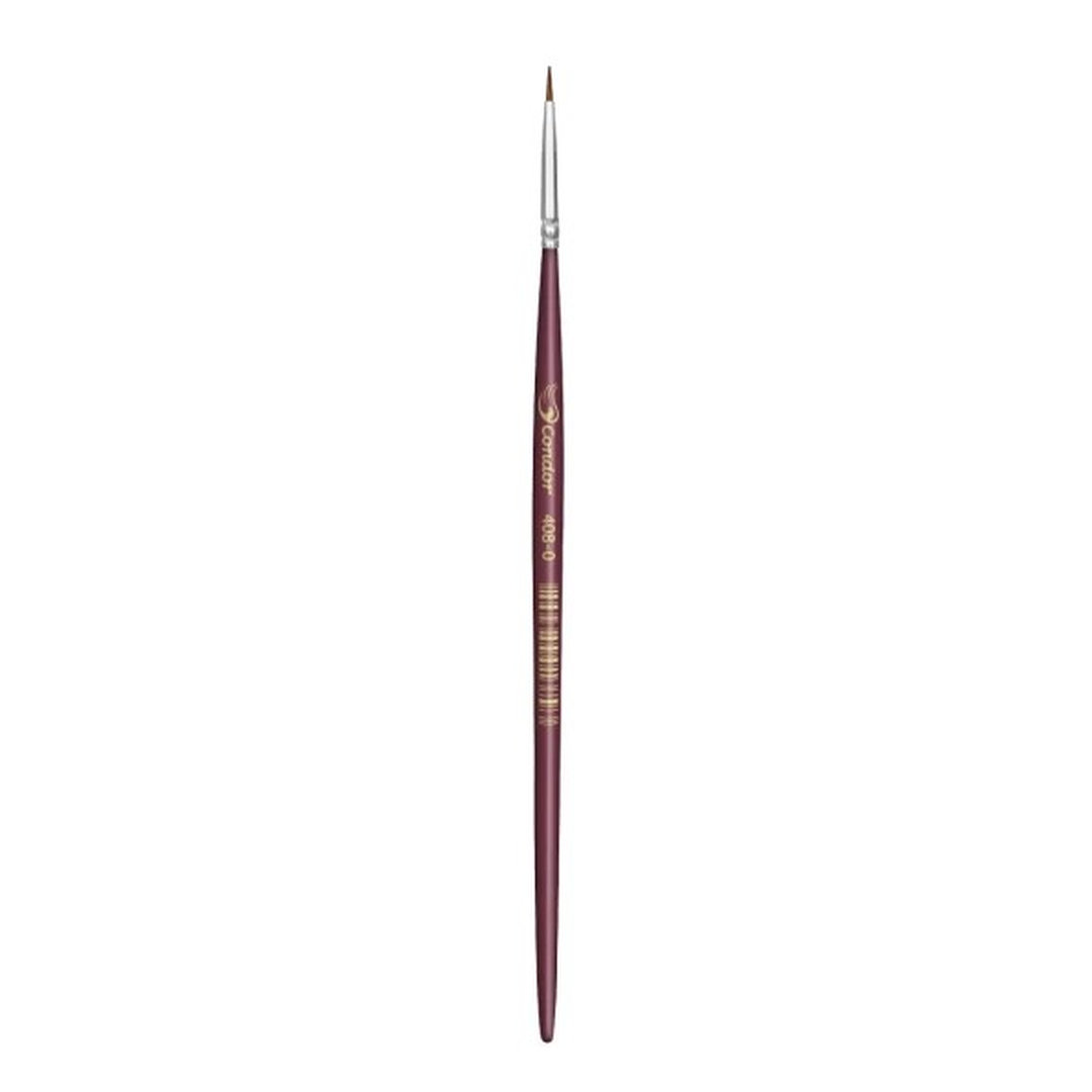 Pincel fino en pelo de marta, punta delgada para detalles finos, marca Condor. Este pincel de marta roja, tiene forma de gota de aceite, punta fina y mango corto. Disponible en # 0
